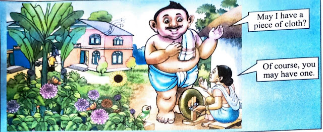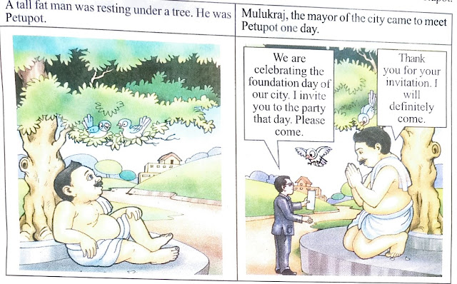 Petupot was very happy. "I must wear a new dress", he said to himself. He visited several cloth shops but did not get a dress that fitted him well. He went to a tailor.