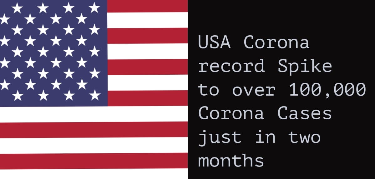 India, 28th March, 2020: Since its first positive case of Noval Corona two months back, USA has faced a fast hike in corona positive cases which rose over 100,000 confirmed cases till today. Only 2 days back it had 85,435 cases and just within this two days the number of cases headed to cross the figure of 100,000 cases.