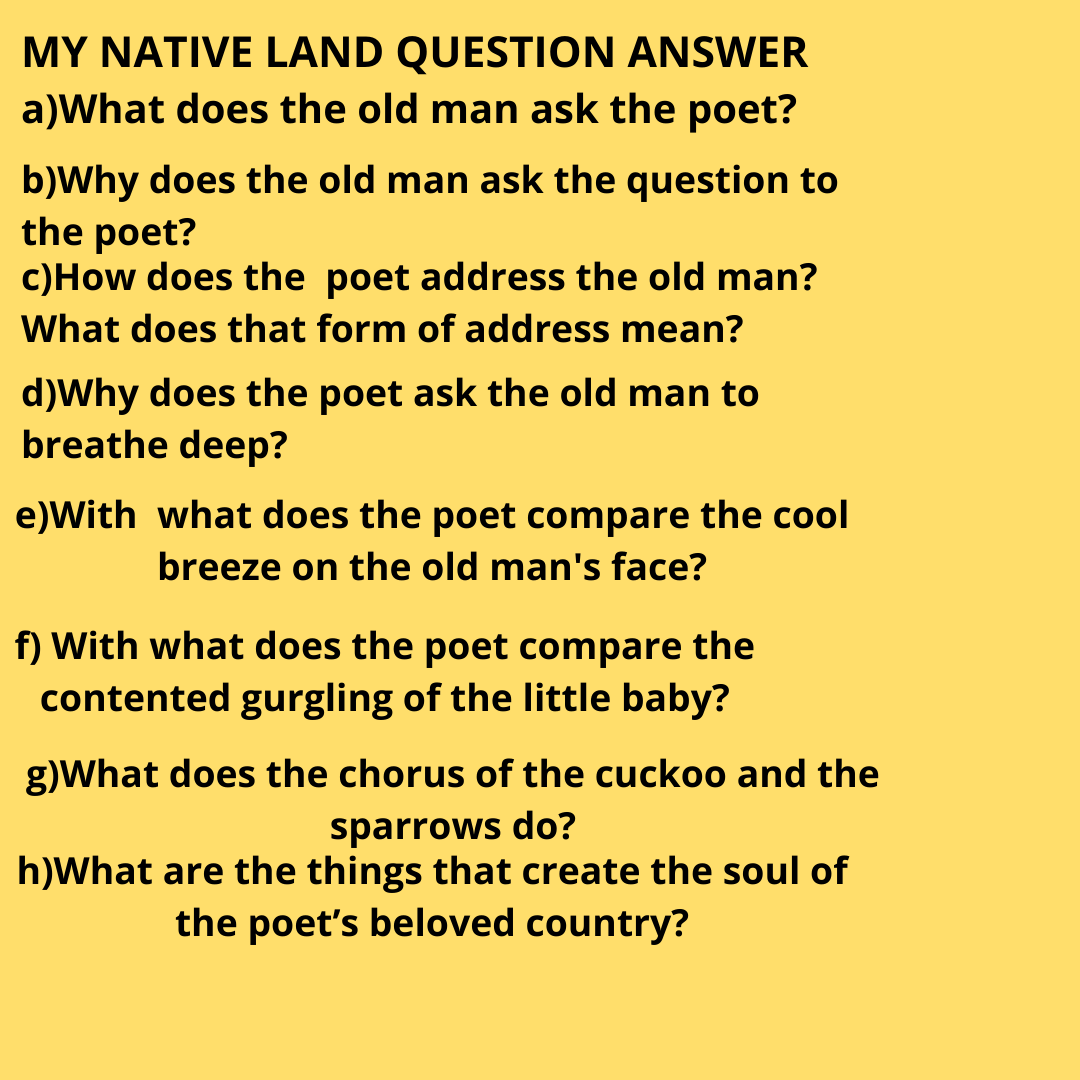 In the poem "The Native land", the poet tries to describe back a piece of native land to an old man.