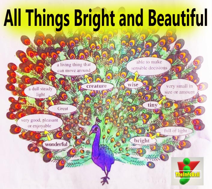 In the poem "All Things Bright and Beautiful", the poet praises the things and creatures made by Lord God. God has created this world full of bright and beautiful things. The creatures created by Him are great and small. God has made things wise and wonderful.