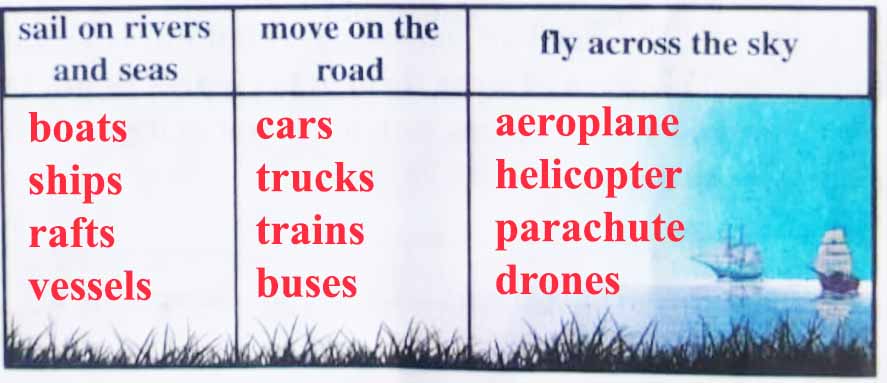 (a) Noun (naming words, for example, 'boat'): river, ship