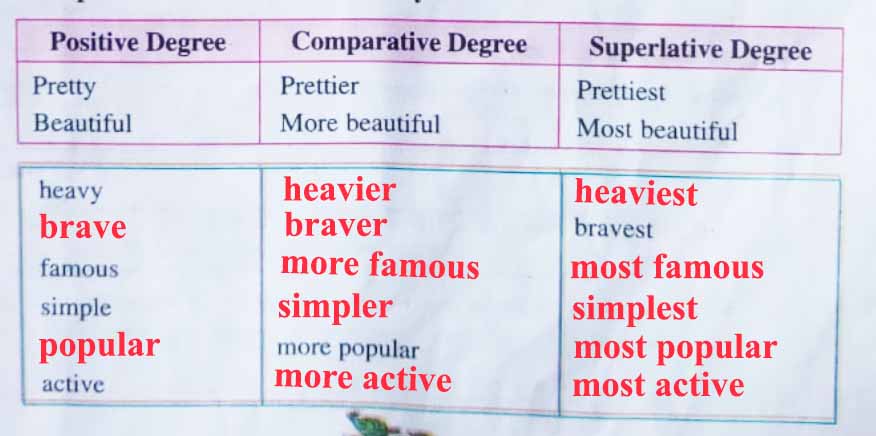 Now think of two other adjectives that can be compared in the same way, and write them in their degree (positive, comparative and superlative) in the space below: