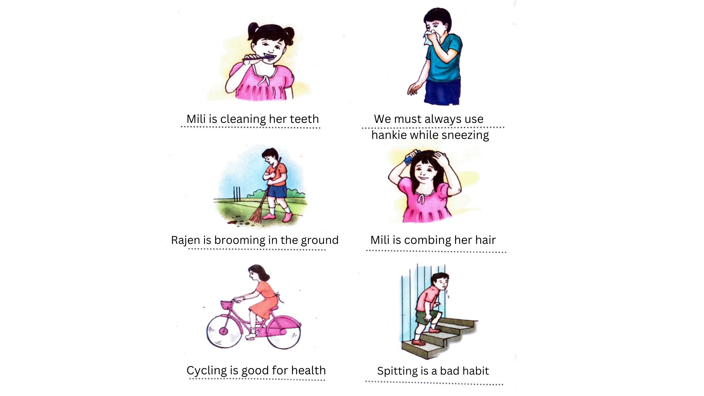 18. Write a sentence below each picture: