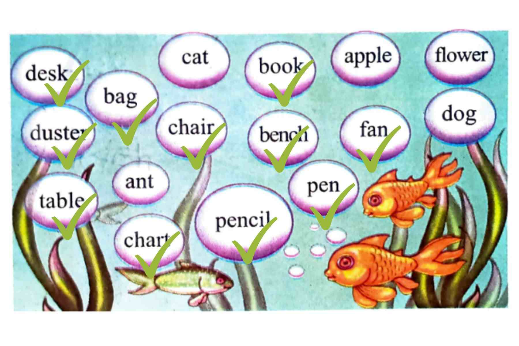 Complete the bubbles in the picture. You may use words given in the box to say what you learnt so far: